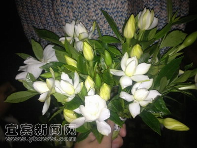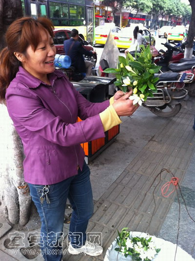 宜賓街頭已有花農(nóng)在出售梔子花。 (甯立 攝)
