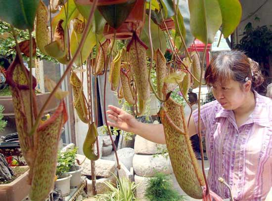 近日,在蘇州花卉市場(chǎng)上能“吃蚊子”的豬籠草上市后受到顧客的青睞。據(jù)了解,豬籠草在籠口處能散發(fā)芳香以吸引蟲(chóng)子,蟲(chóng)子建筑施工一旦落入籠底,就會(huì)被籠中液體淹溺而死,并慢慢地被豬籠草&花園設(shè)計(jì)ldquo;消化吸收”。圖為5月27日,長(zhǎng)沙園林設(shè)計(jì)蘇州市民在皮市街花卉市場(chǎng)觀賞能吃蚊子的豬籠草。