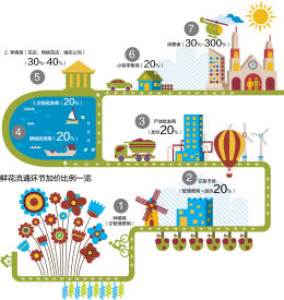 由此可以看到,就是這些進(jìn)價(jià)不過5元、花園設(shè)計(jì)20元的鮮花,在所謂的概念炒作和包裝后,在網(wǎng)絡(luò)上的售價(jià),一下飆升至30元乃至100元,增長了5倍之多。