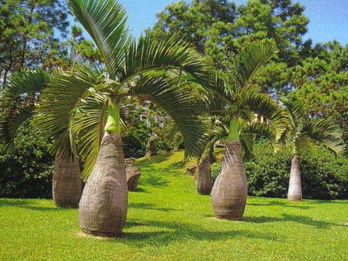園林應(yīng)用:非常適宜庭園配置和盆栽觀賞。酒瓶椰子株形奇特,生長(zhǎng)較慢,從種子育苗到開花結(jié)果,常需時(shí)20多年,每株開花至果實(shí)成熟需18個(gè)月,但壽命可長(zhǎng)達(dá)數(shù)十年,其形似酒瓶,非常美觀,是一種珍貴的觀賞棕櫚植物。既可盆栽用于裝飾賓館的廳堂和大型商場(chǎng),也可孤植于草坪或庭院之中,觀賞效果極佳。此外,酒瓶椰子與華棕、皇后葵等植物一樣,還是少數(shù)能直接栽種于海邊的棕櫚植物。