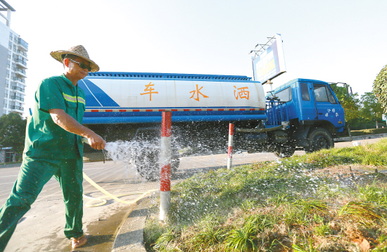 為了讓市區(qū)的綠化能繼續(xù)郁郁蔥蔥,市園林部門從原本十天半個月澆一次水,到現(xiàn)在一天澆3次水。