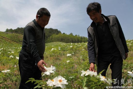2013年馬國卿到山東省菏澤考察回來后,在村委會的大力支持下,投資20余萬元在山東引種53000株牡丹苗子和1000斤油用型白牡丹種子,又在本村租賃100畝土地成片種植牡丹。去年他還收獲了100多斤牡丹種子,今年他還把種子經(jīng)過簡單處理后進(jìn)行田間育苗還想繼續(xù)擴(kuò)大栽植規(guī)模。