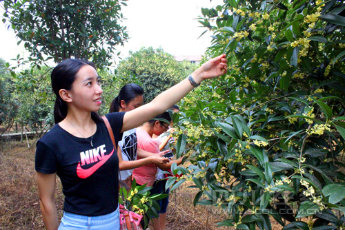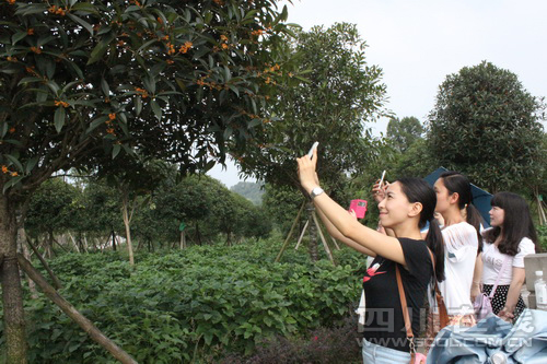 走近“香海廣場”桂花科普園,遠(yuǎn)遠(yuǎn)就聞到那淡淡的香味,走上前去,映入眼簾的是那一棵棵婆娑的桂花樹,一簇簇桂花或白或黃,點綴在濃密的綠蔭間,不張揚卻芳香四溢。“在桂花科普園沿著鄉(xiāng)村游道逛一圈,連衣服、褲子都沾滿香氣。”筆者看見,來自成都一游客雷先生興奮地掏出手機(jī),急切打電話告訴家人和圈內(nèi)哥們朋園林友,“最養(yǎng)眼最素雅的東西找到了,“香海公園”桂花,現(xiàn)正相繼開放,香得很!好耍得很!下一次游耍玩玩兒就訂在貴地了!”