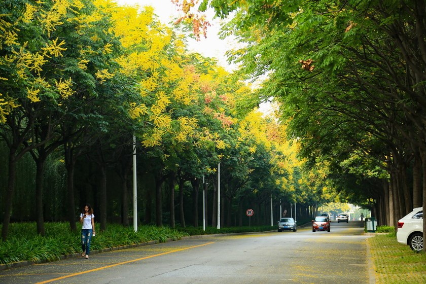 回家查了資料才知道街頭看到的美麗大樹是欒樹,因其耐寒耐旱,常栽培作庭園觀賞樹。欒樹抗風(fēng)能力較強(qiáng),可抗零下25℃低溫,對粉塵、二氧化硫和臭氧均有較強(qiáng)的抗性。欒樹木材黃白色,易加工,可制家具;葉可作藍(lán)色染料,花供藥用,亦可作黃色染料。