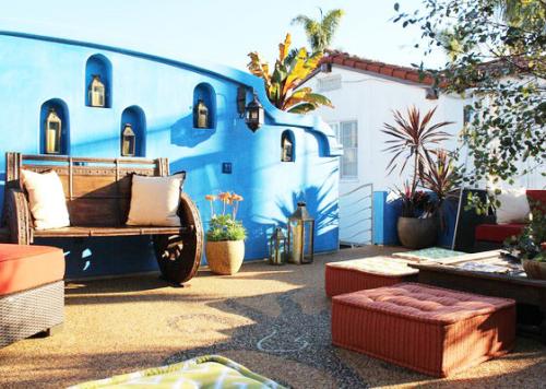 地中海風(fēng)格設(shè)計(jì)的顏色都來(lái)自于自然中最淳樸的顏色,白色、藍(lán)色、黃色、綠色、土黃色、褐色,給人一種陽(yáng)光和自然的感覺(jué)。地中海式庭院,白墻的涂抹不規(guī)則表面以及不修邊幅的線條,不經(jīng)意間給人一種自由奔放感。