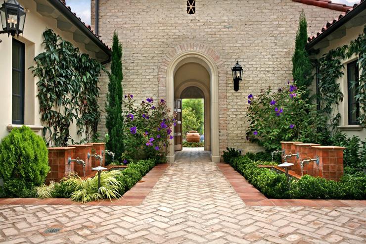 裝飾地中海風(fēng)格的庭院一般都會(huì)有棕櫚樹(shù)、陶罐、游泳池、沙發(fā)、拱門(mén)與半拱門(mén)、馬蹄狀窗子、遮陽(yáng)景觀等標(biāo)志性元素。因?yàn)榈刂泻V苓叺貐^(qū)溫度高、日曬長(zhǎng),因此需要有一些長(zhǎng)滿(mǎn)的棚架來(lái)形成一個(gè)天然的遮陰篷,地中海庭院最常見(jiàn)的植物都是耐旱少維護(hù)的植物,地面一般以石塊、陶瓷磚、碎石、小河石等進(jìn)行鋪裝。陶罐、水缸等最開(kāi)始是地中海地區(qū)用來(lái)儲(chǔ)水的,漸漸的演化成了現(xiàn)在的庭院裝飾作用。
