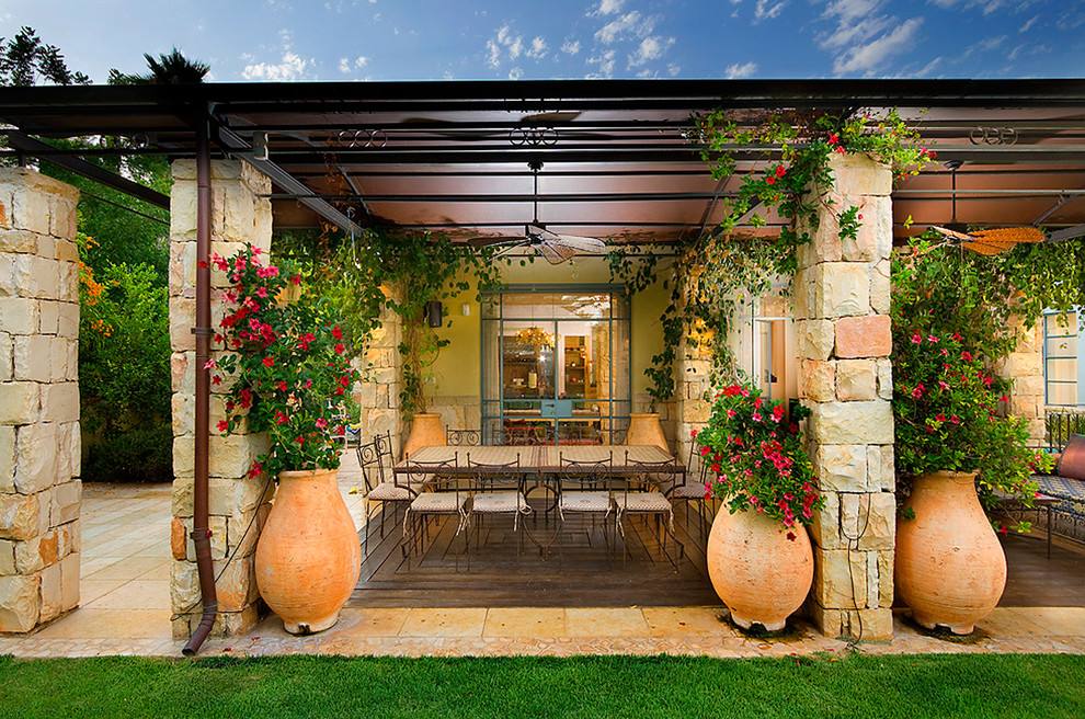地中海式庭院一般有意的模糊了室內(nèi)室外的界限,地中海風(fēng)格的庭院設(shè)計(jì)了戶(hù)外就餐區(qū),讓人身在庭院感受一種悠閑愜意的淳樸生活方式。