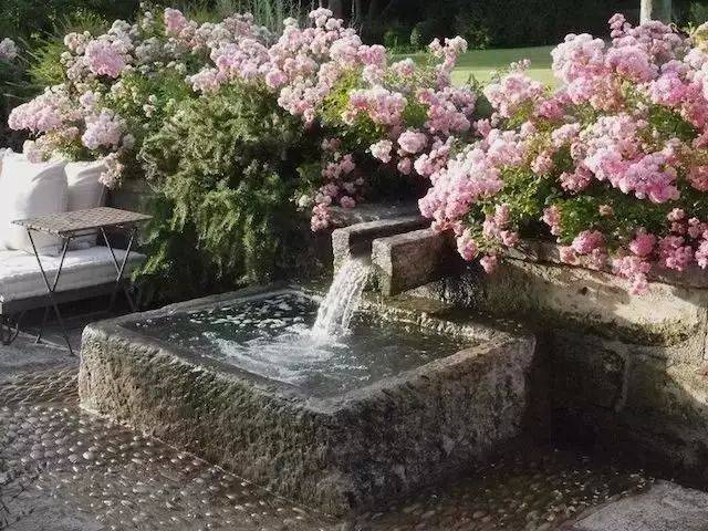 庭院里有一個(gè)小小的噴泉,會(huì)增加水景的動(dòng)感效果,也是的景觀更有層次感。