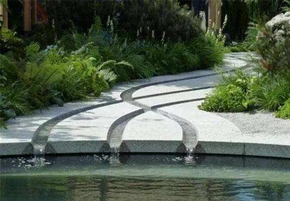 庭院景觀加入帶狀流水水系,流水給人生命之源的生動(dòng)感,流量、流速、水深的變化都會(huì)產(chǎn)生豐富的試聽(tīng)效果。一些喜歡風(fēng)雅的業(yè)主會(huì)選擇在在水景會(huì)在加入一些文化內(nèi)涵,將人文內(nèi)涵與自然景觀融合,別有一番韻味。