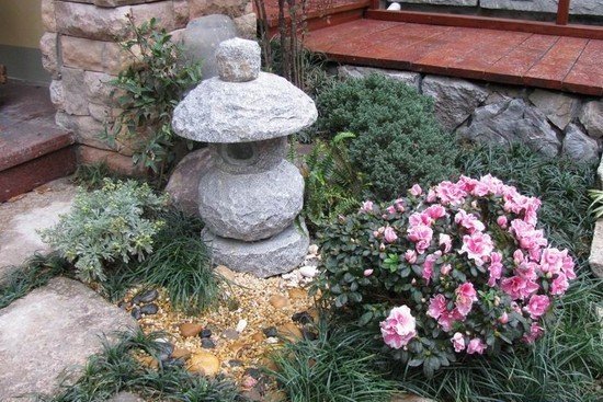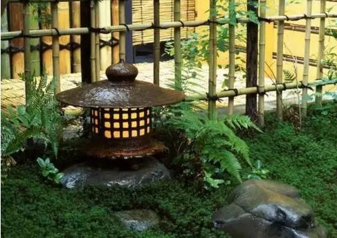 在日式庭院中經(jīng)??梢姷氖鞘療艋\,有的放置在池邊,有的隱匿在草叢里,如同庭院的守護者一般。石燈籠的雛形來源于中國供佛時點的燈,也就是供燈。所以石燈籠最早是出現(xiàn)在日本的寺廟,然后被廣泛用于園林中。