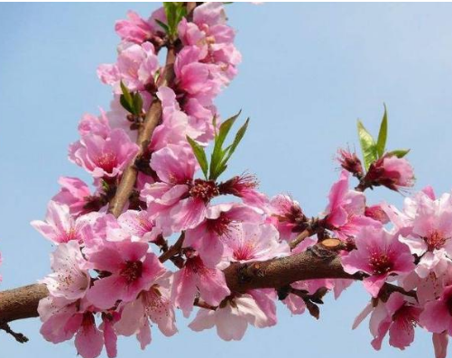桃花花期在3-4月,南北氣溫差異導(dǎo)致花期略有差異,桃花與梅花最明顯的區(qū)別在于開花時伴嫩綠色的葉子,與櫻花最明顯的區(qū)別在于花朵直接長在枝干上,無花柄。