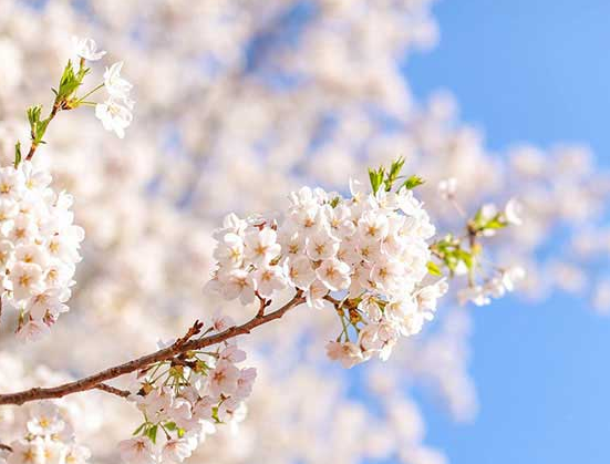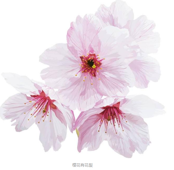 櫻花花期在3月下旬-4月下旬,花朵成簇,先葉后花,花朵有長花柄,花瓣有花缺。