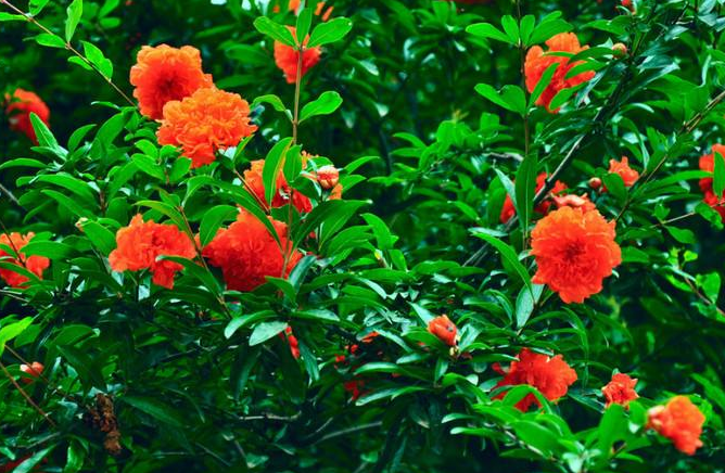其實(shí)很多園林景觀中,我們經(jīng)常會(huì)見(jiàn)到萬(wàn)綠枝頭火紅綻開(kāi)的石榴花。石榴樹(shù)渾身都是寶,不僅石榴花開(kāi)火紅旺盛具有極強(qiáng)的觀賞性,石榴花可以做成美味的菜肴,石榴葉、石榴皮、石榴花還可以入藥,石榴果實(shí)成熟石榴籽如寶石般晶瑩剔透,甘甜多汁,富含維生素C及B族維生素,有機(jī)酸、糖類(lèi)、蛋白質(zhì)、脂肪及鈣、磷、鉀等礦物質(zhì),還富含豐富的各種酸類(lèi),包括有機(jī)酸、葉酸等對(duì)人體有保健功效,具有食療作用。