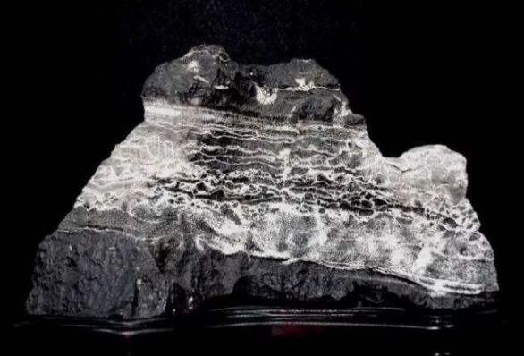 又稱積層巖或者千層巖,屬于海相沉積的結(jié)晶白云巖,石質(zhì)堅(jiān)硬致密,外表有很薄的風(fēng)化層,比較軟;石上紋理清晰,多呈凹凸、平直狀,具有一定的韻律,線條流暢,時(shí)有波折、起伏;顏色呈灰黑、灰白、灰、棕相間,其棕色稍顯突,色澤與紋理比較協(xié)調(diào),顯得自然、光潔;造型奇特,變化多端,多有山形、臺(tái)洞形等自然景觀,亦有寶塔形、立柱形及人物、動(dòng)物等形象,既有具象又有抽象,神韻秀麗靜美、淡雅端莊?!∫蚱涑练e年代及硅化程度的不同,形成的層理結(jié)構(gòu)迥然有異,沉積年代久遠(yuǎn)的千層石近于玉質(zhì)。千層石外形平整,石型扁闊,紋理獨(dú)特。