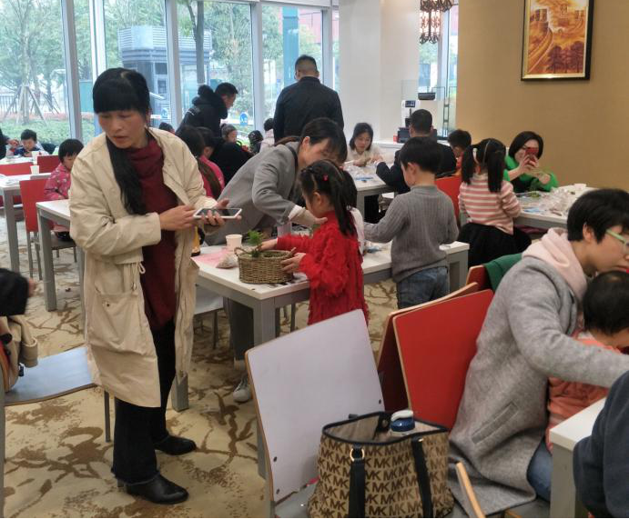 此次微景觀DIY活動地點位于華融湘江銀行,寓安園林與華融湘江銀行共同攜手,帶領(lǐng)客戶家庭一起制作。小小的的植物組合搭配而成的漂亮景觀,吸引了大量的家長與小朋友來參加此次活動。