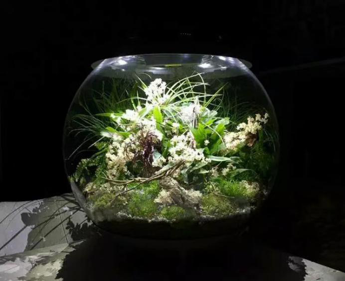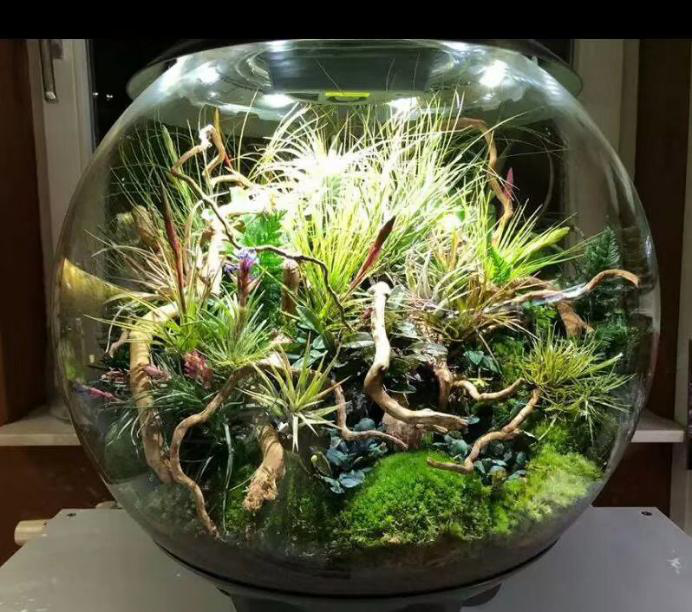 樹根,苔蘚,網(wǎng)紋草,空氣鳳梨,不同的植物組合搭配,小小的玻璃缸,打造出屬于植物自己的小天地。