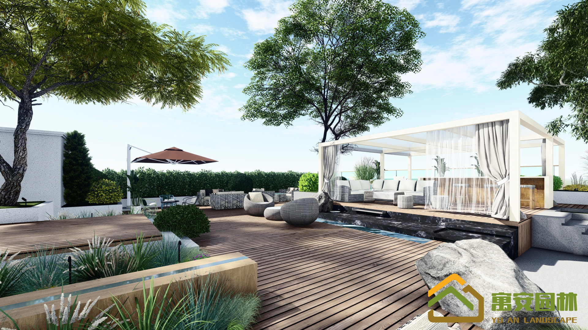 屋頂餐廳花園作為重要的活動、休憩空間。在設計中本著以人為本的原則。充分考慮客戶的多