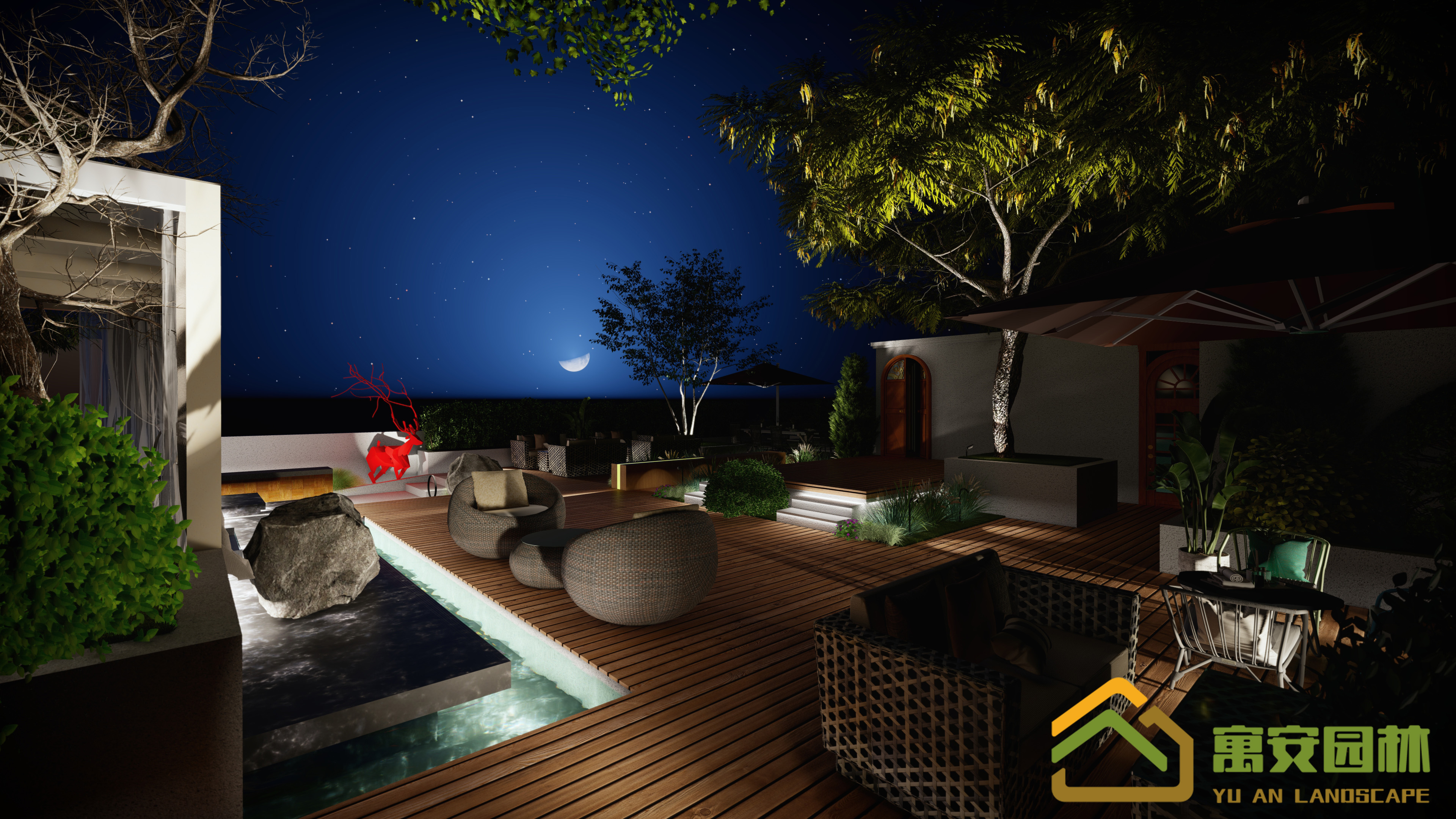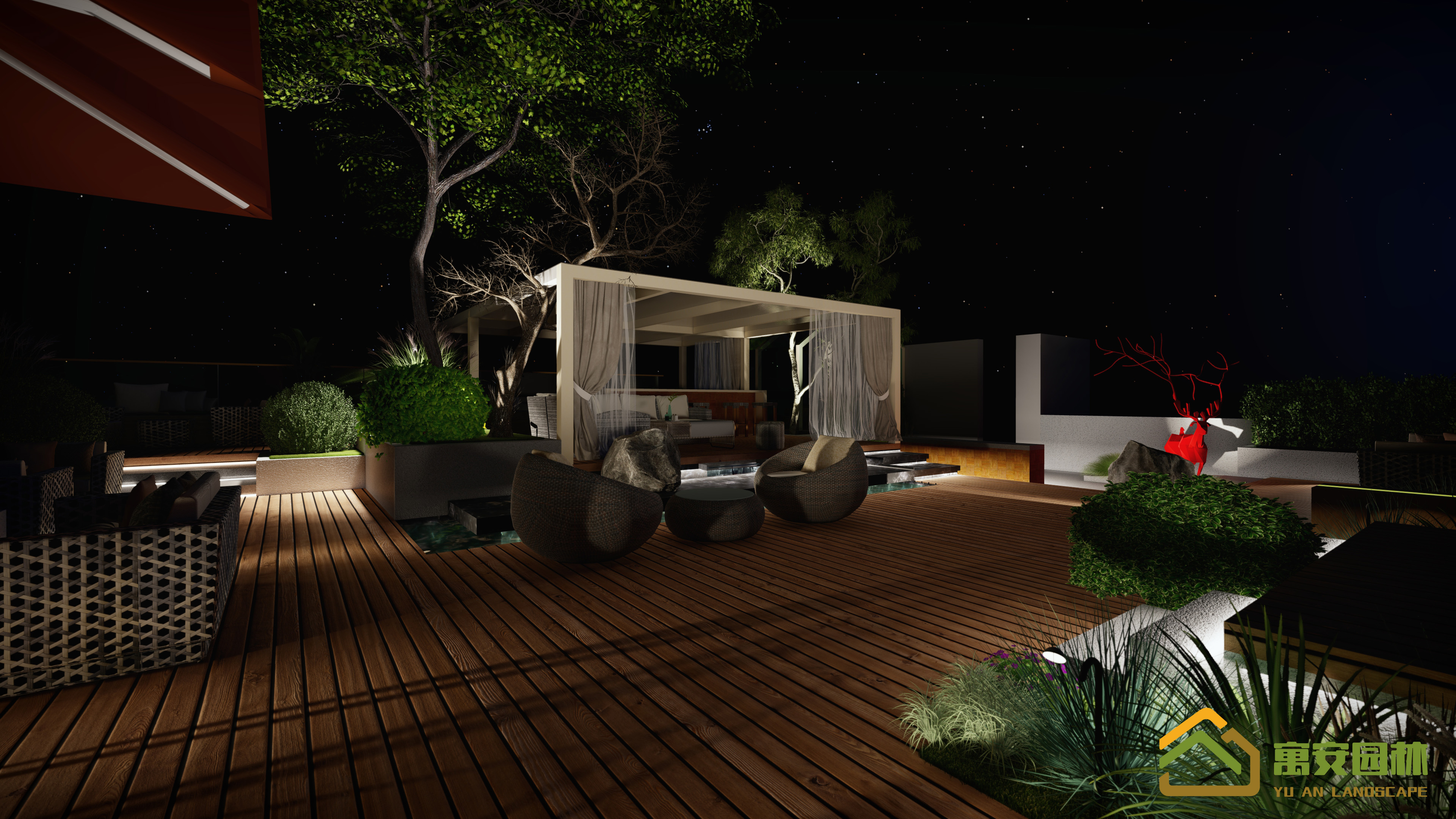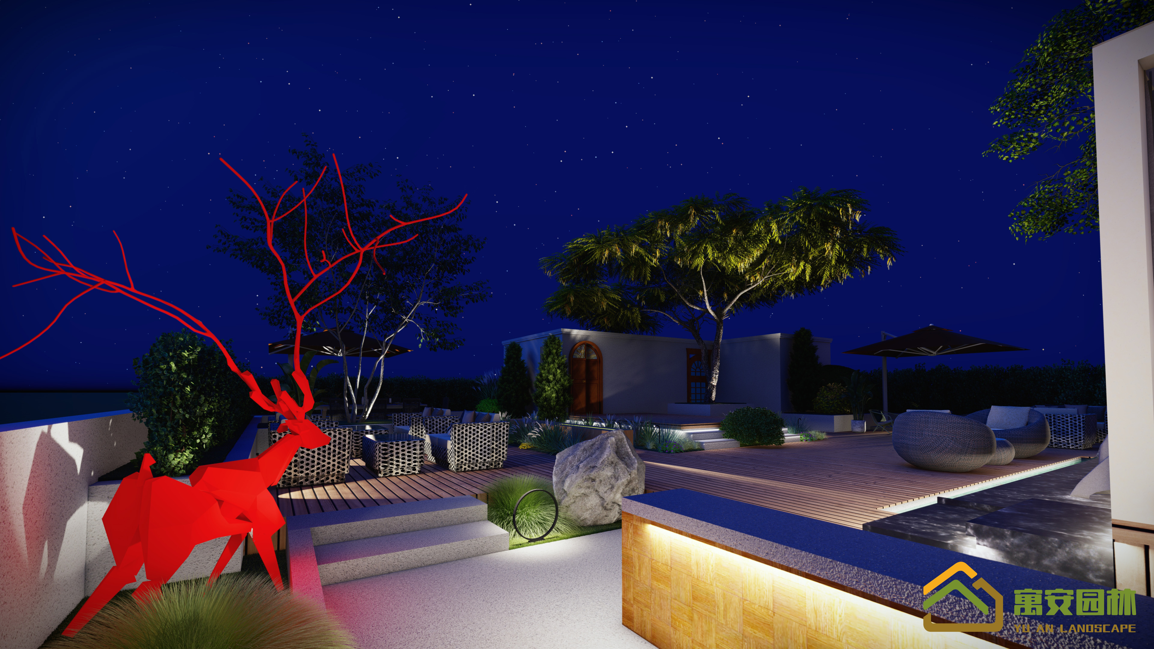 光的襯托整個餐廳花園夜景更加靈動。