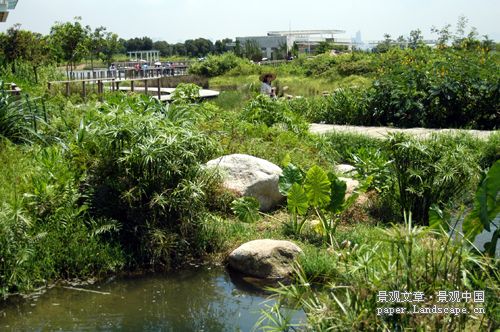 在施工過程中始終注意盡可能減少對生態(tài)環(huán)境的負(fù)面影響。所有開挖出來的材料都重新在場地中利用。有關(guān)方面會很小心的監(jiān)控臨時圍墻、建筑模板和其它臨時工程的使用。天然粘土被用做湖泊或水池的防水材料。