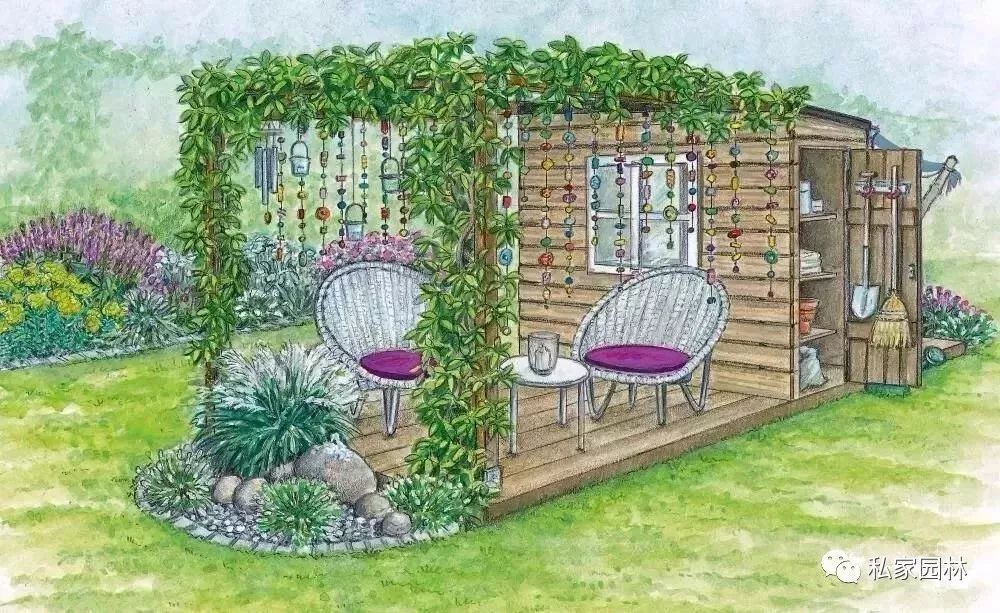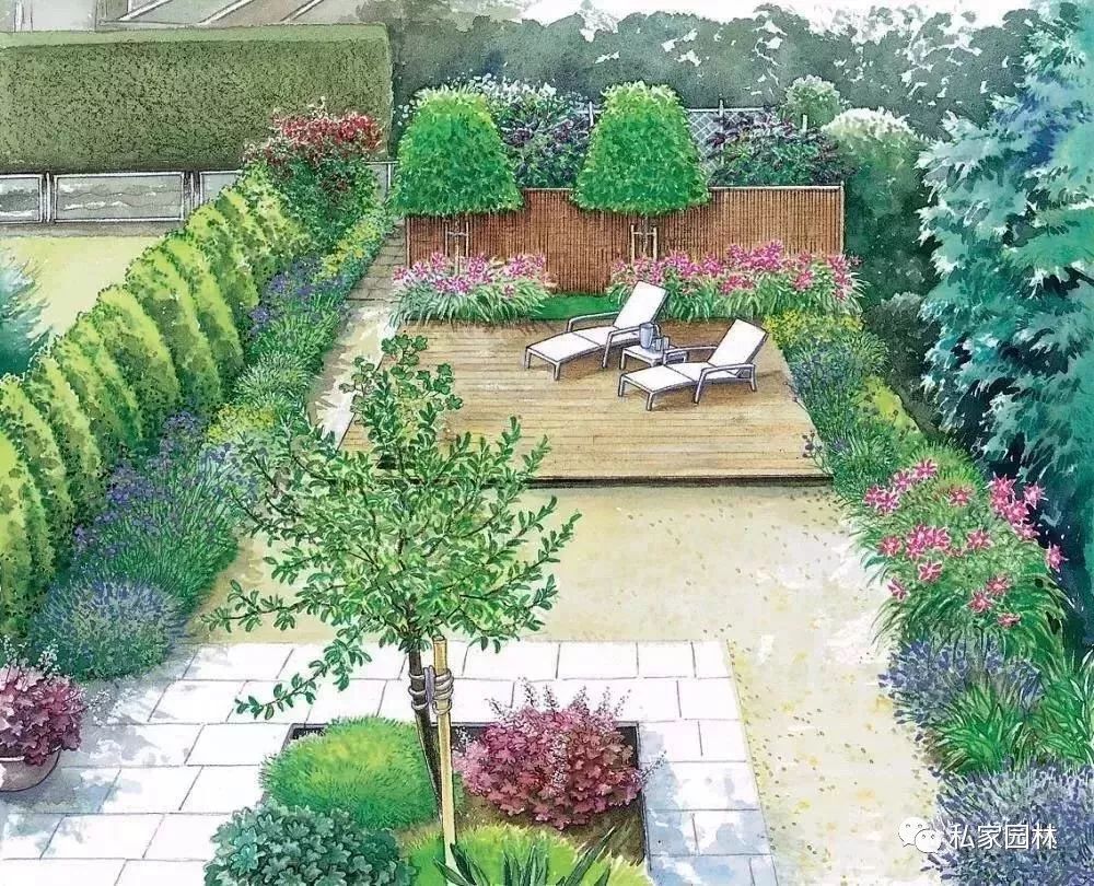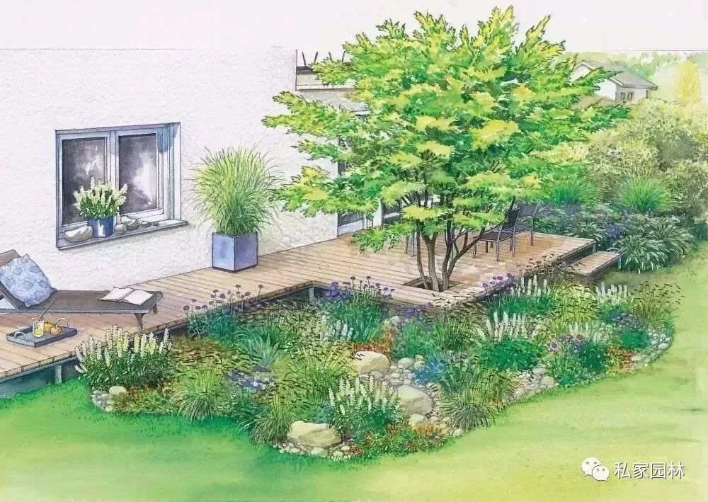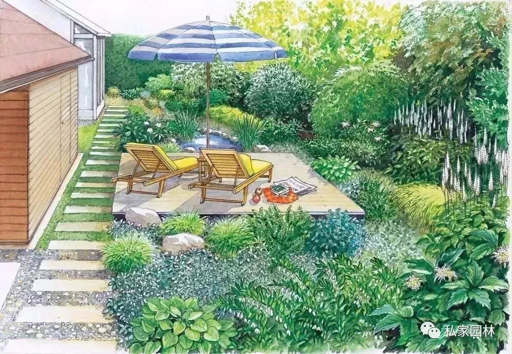 經(jīng)過分析之后,你的腦袋里可能已經(jīng)有了具體的想法了,不要著急實施,不妨先畫一畫草圖,也不需要多好的畫畫功底,主要是為了心中有數(shù),確定植物擺放位置和需要的量。注意這里需要預(yù)留小徑,空出座椅的位置,初學(xué)時容易忽略這些空間。