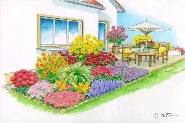 色彩設(shè)計上應(yīng)巧妙地利用花色來創(chuàng)造空間或景觀效果。色彩設(shè)計應(yīng)注意與環(huán)境、季節(jié)相協(xié)調(diào)。
