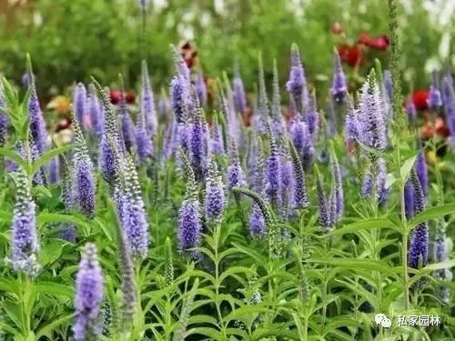 花境前景一般選擇匍匐狀、枝葉密集的植物,背景多選擇高大、穗狀或直線條類的植物。盡量豐富植物種類,達到步移景異的效果;在時間上,要講究“四時不同”,通過合理搭配,讓人們在不同季節(jié)欣賞到各具特色的景觀。