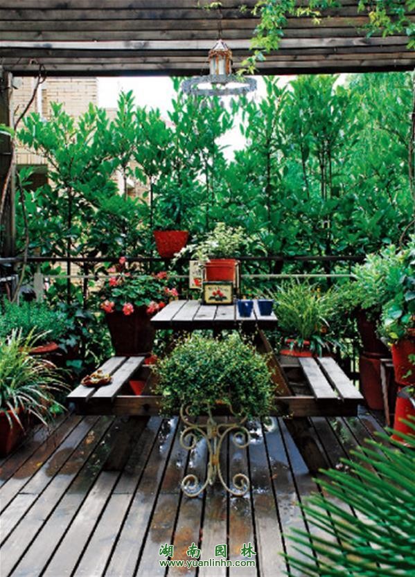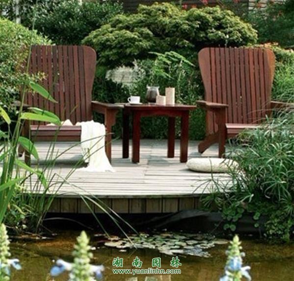 這是一座聯(lián)結(jié)前花園和后院的甲板式露臺(tái);這里很適合喝茶,因?yàn)橹魅藢⒋说夭贾贸膳柙韵悴輼?lè)園。