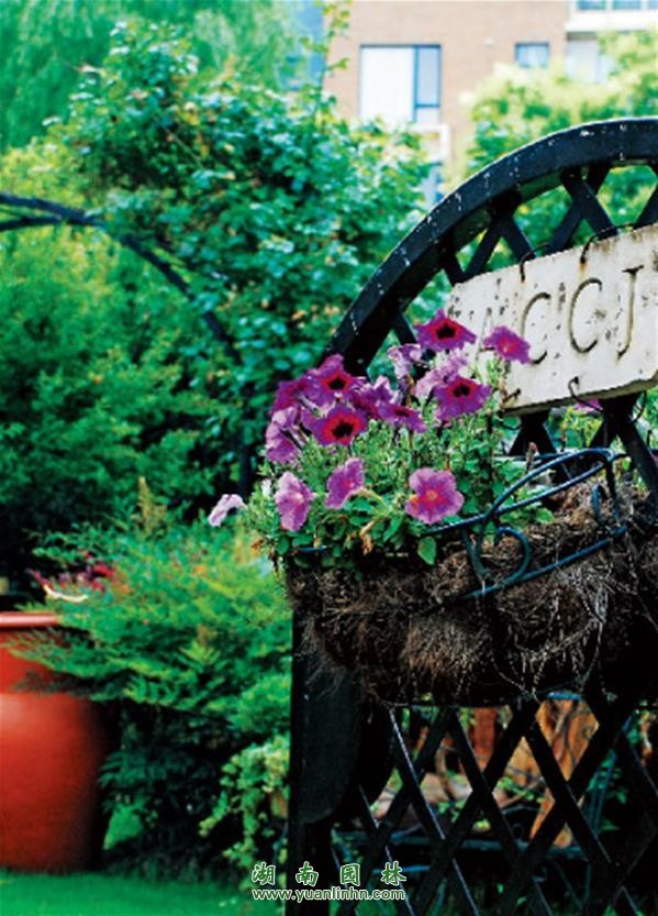 布置通常使用不同材質(zhì)和花式的吊籃,用吊鉤懸掛起來(lái)的方式,常用于廊架、棚架,甚至晾衣架上。這種布置方式不影響主人在下面的活動(dòng),也不占用花園面積,并且讓空間更加生動(dòng)。需要特別注意的是懸掛的可靠性、安全性。吊鉤要確認(rèn)牢固,吊籃則盡量輕盈,并且最好具有蓄水功能,以免澆水時(shí)滴落弄臟地面。