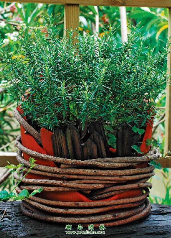 破碎的素陶盆在藤條的懷抱中得到了重生;迷迭香見(jiàn)證著這一切。