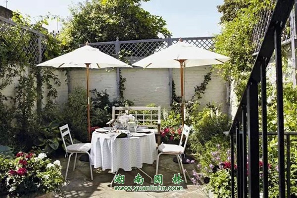 利用淺色的戶外家具和植物來裝點你的陽臺,如果你需要遮陰的地方,放一把防曬傘就行啦。