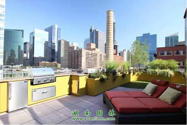 在大都市的生活中能夠享受一些新鮮空氣是一件特別美好的事情,如果你的屋頂露臺特別大,可以大膽的添置一些設(shè)施和植物,擴大戶外休息區(qū),這里甚至可以變成酒吧!