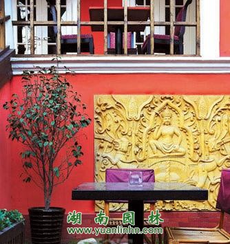 在花園里裝飾泰國特有的金色佛像,表達(dá)出帶有佛教文化背景的生活情趣。