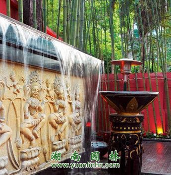 泰國特有的金色佛像配上雕刻精美的噴水池,增添了華麗、貴氣。