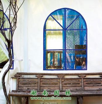 經(jīng)過改造的老洋房花園,用藍(lán)、白兩色構(gòu)造出地中海風(fēng)情,又與原有氛圍和諧統(tǒng)一于一體。